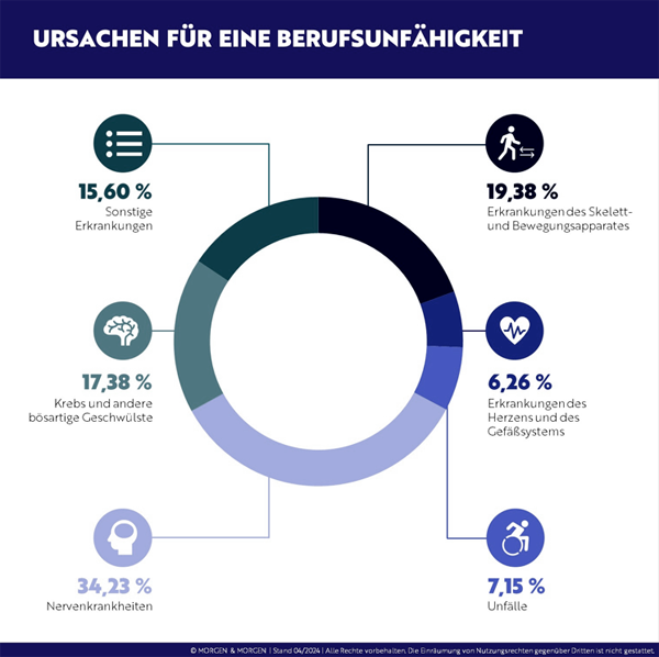 Ursachen für eine Berufsunfähigkeitsversicherung gibt es viele, ob Unfälle, Erkrankungen des Skelett- und Bewegungsapparates oder Krebs und andere bösartige Geschwülste. Besonderes Augenmerk muss aber auf die stetig ansteigende Anzahl an Nervenerkrankungen, die zur Berufsunfähigkeit führen, gelegt werden. Für mittlerweile knapp ein Drittel aller Leistungsfälle sind Nervenerkrankungen wie Burn-Out die Ursache, Tendenz stark steigend. Diese Tatsache beweist nun, dass nicht nur körperlich Tätige ein hohe Risiko haben, sondern alle Personen, die am Arbeitsprozess teilnehmen.